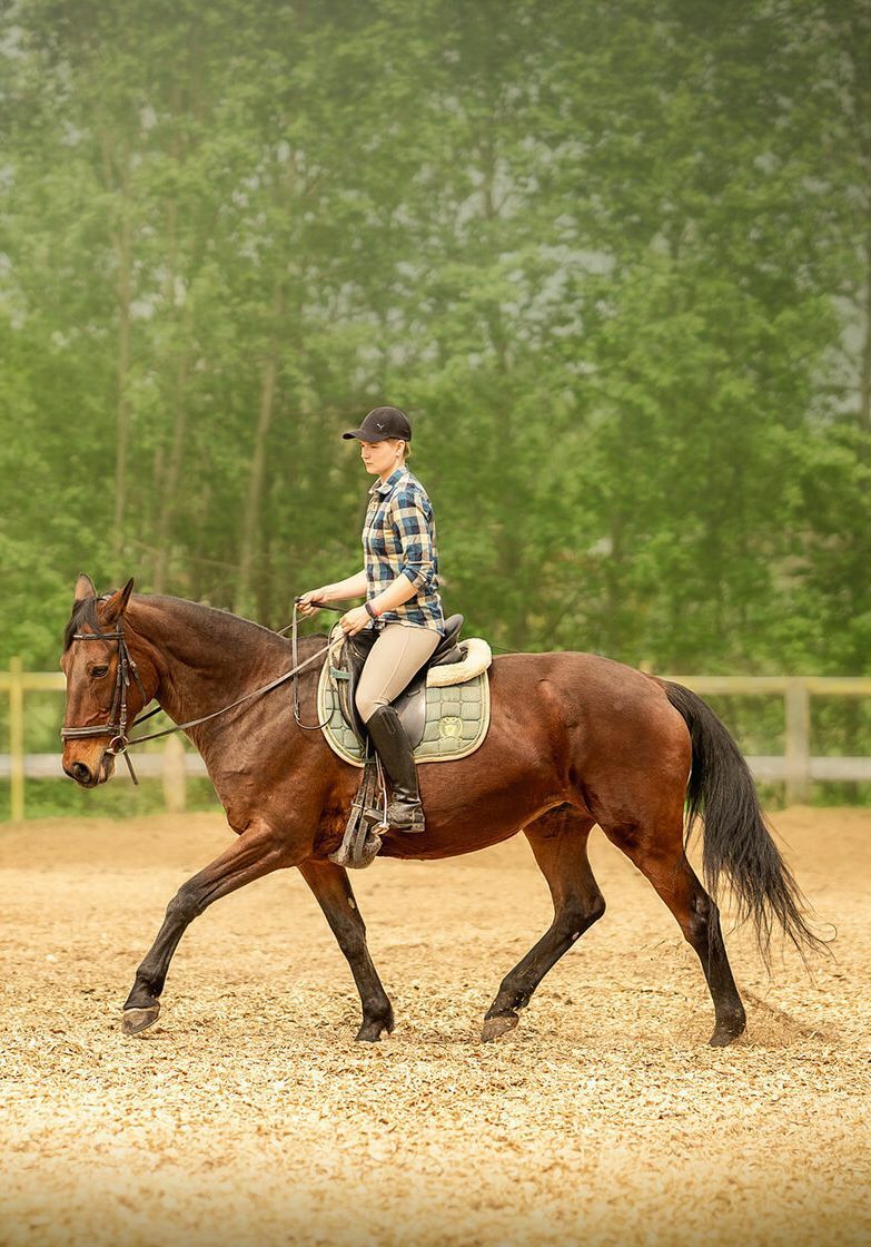 2004 года рождения. от Дзинтари латвийской упряжной породы ( спортивного направления ) и ганноверского жеребца Хриза. В её родословной встречаются крови многих пород. Здесь и чистокровные верховые , и тракененские крови , и ганноверские. Её папа Хриз имел отдалённый инбридинг на легендарного Пепла, а дедушка Хадар долгое время был основным производителем фермерского хозяйства Маланичевых и в 2012 -2013 годах признавался лучшим жеребцом-производителем России. Об этой лошади я могу писать бесконечно. Умная, послушная, интеллигентная, пластичная, очень энергичная , несмотря на крупные размеры. Своей душевностью и настроенностью на сотрудничество с человеком Даша напоминает маму Зиночку, а импульсивность и энергия от папы Ромика. Спортивный путь Даши прошёл в такой конной дисциплине, как выездка. Всех без исключения судей восхищали её движения, свободный шаг и "полётная" рысь. Не помню соревнований по выездке в нашем клубе, где-бы она не заняла призового места, даже если на ней выступал спортсмен впервые севший на эту лошадь. Тренер нашего клуба, Диана Андреевна И., начала заниматься и выступать на Даше с 11 лет. Не всегда хватало умения и опыта, чтобы справится с огромной силой и энергией, что заложена в этой лошади. Но большое количество призовых розеток и кубков, которые стоят у нас на полке - это заслуга этой замечательной лошади! Как и у любой лошади, у Даши есть недостатки. Она не любит прыгать барьеры) Сейчас Даше 18 лет. Она уже вступила в пенсионный возраст, стала спокойнее . И сейчас она учит маленьких детей и взрослых на манеже , участвует в фотосессиях и бережно возит людей без опыта верховой езды на верховых прогулках.